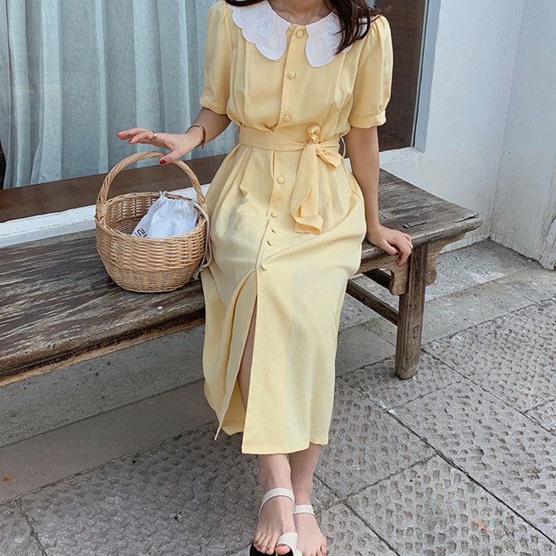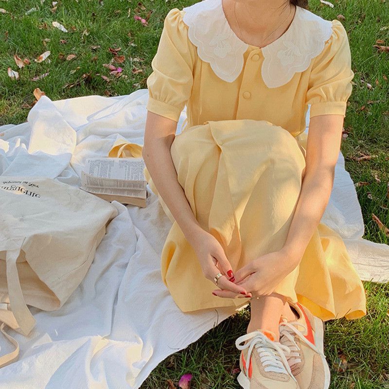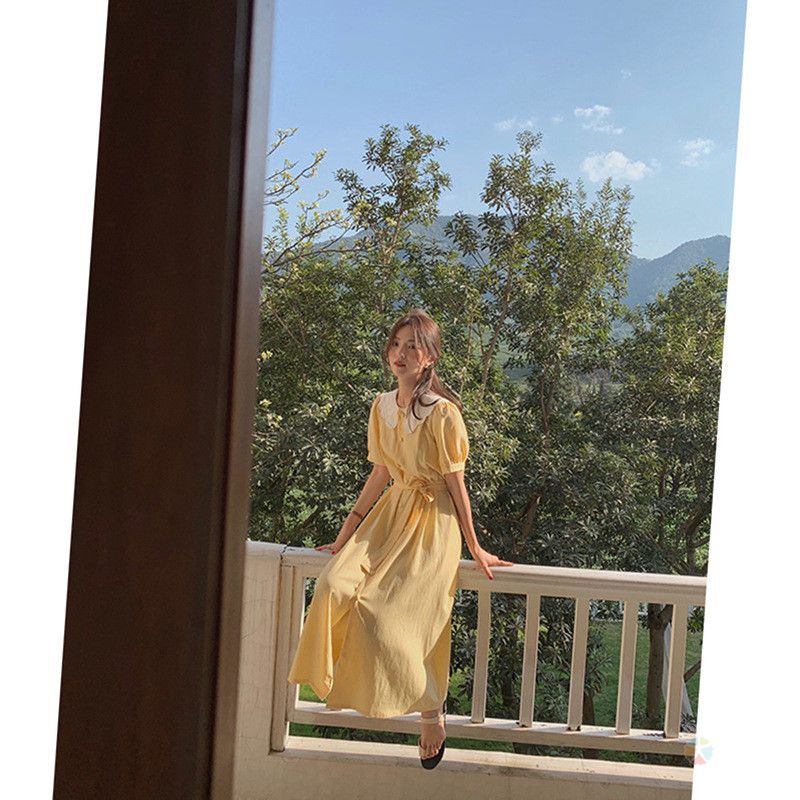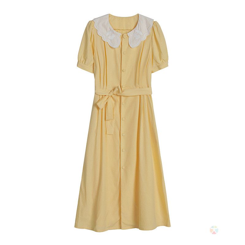 小清新小个子娃娃领连衣裙显瘦显高气质女神范长裙子2021新款